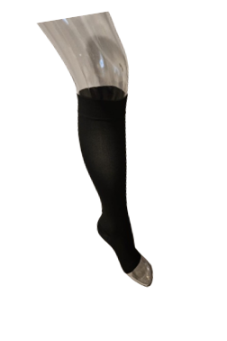 - Elevate your leg support with our Knee High Compression Stockings featuring an open toe design and graduated compression of 20-30 mmHg.